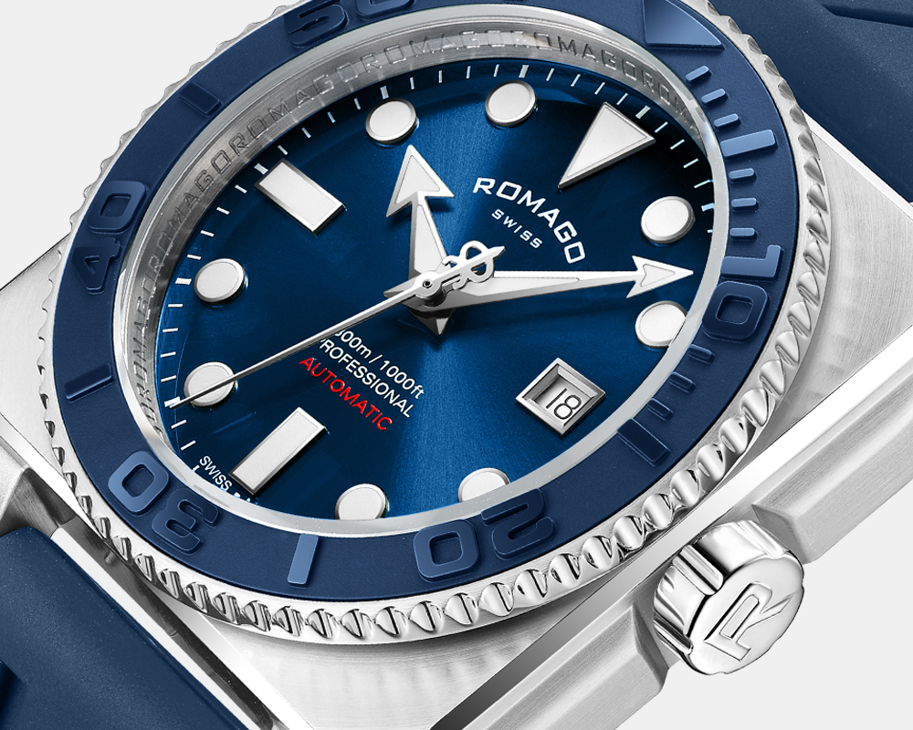 To enhance the legibility of the watch in the dark, the unidirectional rotating bezel is fitted with enamel index, together with the super white luminous hour markers and hands. 300 meters of water resistance enough to cope with the professional scuba diving guarantees its performance practical and reliable.