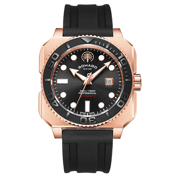 A sports watch dedicated to scuba-divers, its 46 mm case is made of excellent rugggedness stainless steel. Beyond the round dial within the emblematic square case, and rubber strap insert on the bezel, this version aims to achieve maximum legibility with the luminescent index and hands coated in white. Set with Swiss-made automatic movement, the timepiece features the date window as well as the impressive 300 meters of water resistance.