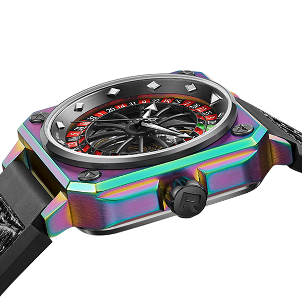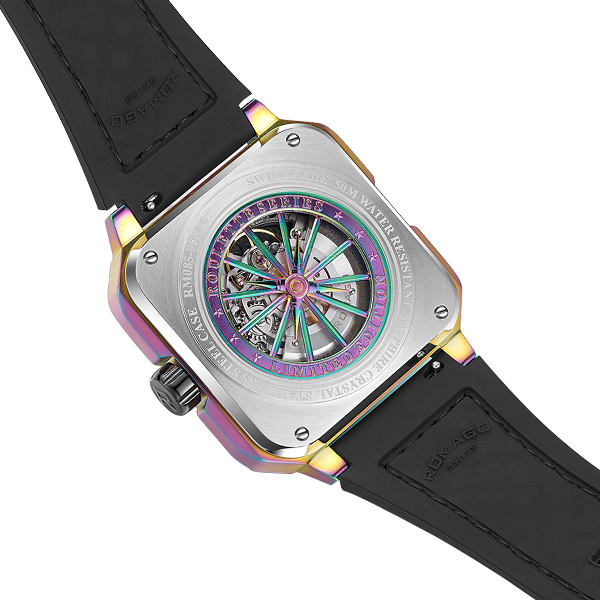 This 46.5 mm automatic model has a stainless steel case and a multi-material strap in black to match with the roulette design of the dial. Skeleton movement is Swiss made with the house’s aesthetics which is also reflected on the star-shaped screws. The transparent case back features an open-worked rotor with shielding design. Water resistance is up to 50 m which is more than enough in every circumstance.  In unveiling the first ever model in the roulette layout, Romago is showcasing a new exercise in horological creativity with the rotatable system as well as the high-level craftsmanship by applying extremely precise measurement.