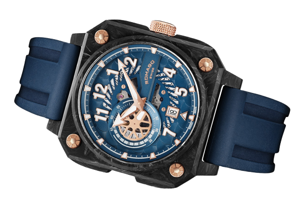 Hosting a Swiss made automatic movement, the result of this watch is an ultra-modern visual identity, a contemporary classic. Beyond the resistance of the unique case milled from the carbon-fibre composites, the stunning piece boasts aesthetically polished renditions as well. Limited in 300 pieces, the 46.5 mm watch is set off perfectly with an exquisite rubber strap, along with the exceptional design inspired by the racing car.